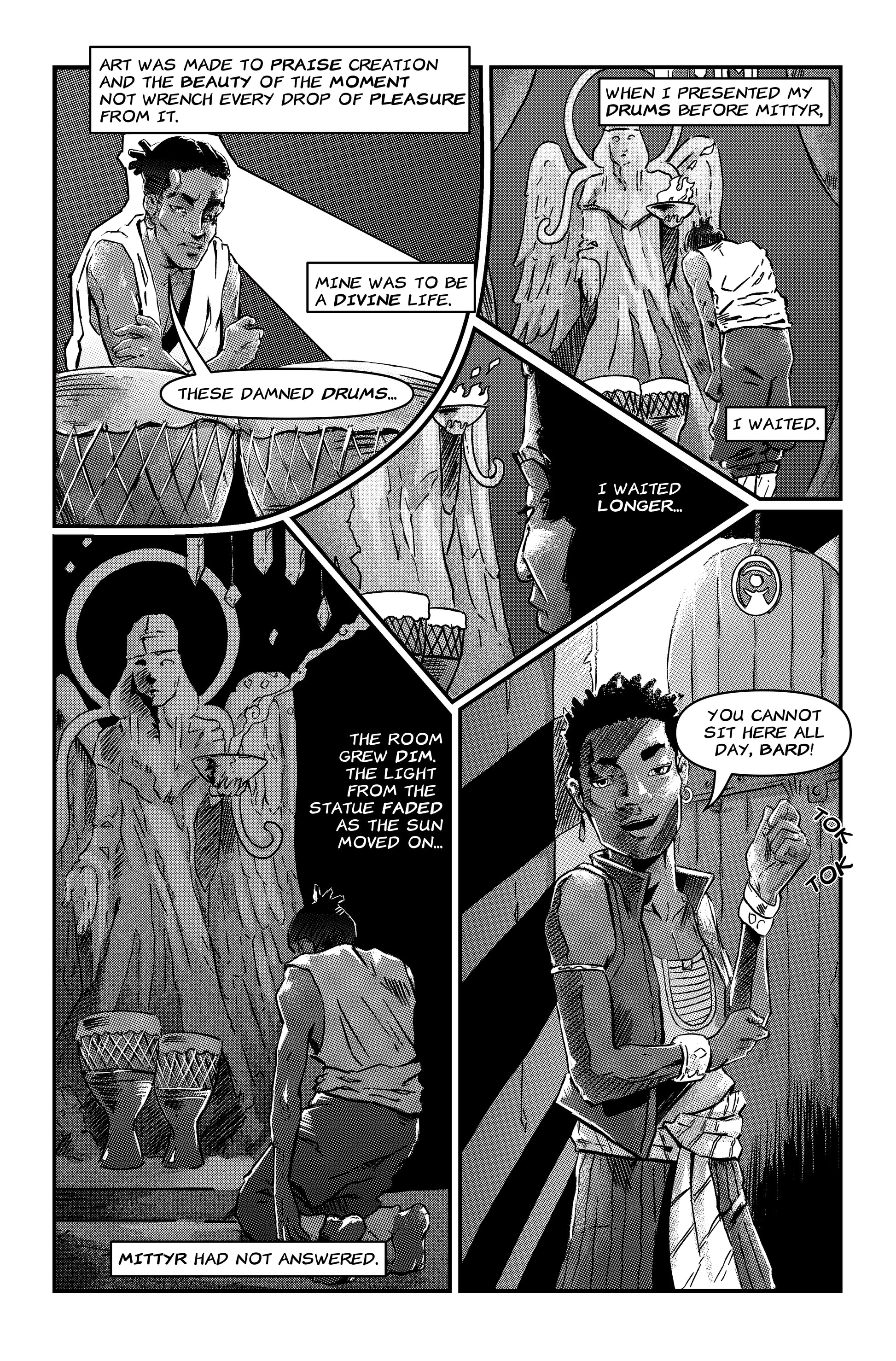 Bard was the prodigy of his village. A talented poet, storyteller, and musician, he was trained as a group effort by his village to carry their hopes. Born to and raised in a religious cult that seeks to reform the capital city of Sattyr, his life and destiny have been set. His future has been planned out for him. That is, until The god Mittyr denies his blessing, ending Bard's hopes for the life for which he was raised.
